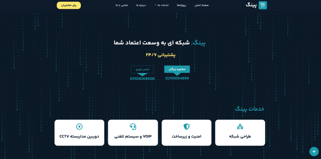 وب‌سایت پینگ برای شرکتی طراحی شده که بیش از ۱۵ سال سابقه در راه‌اندازی شبکه، امنیت، سرورها، VOIP و دوربین مداربسته دارد. هدف اصلی این پروژه: